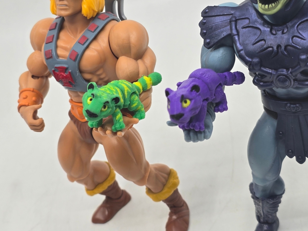 They are fully articulated. No painting on these – they are all printed. Such a great design! I use a Bambu X1 Carbon printer. No He-Man or Skeletor figure included, that was just a prop to show scale and my pictures.